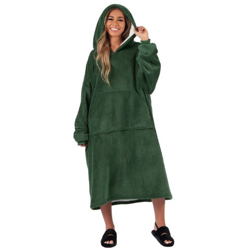 XXL termo deka s rukavima i kapuljačom pruža toplinu i udobnost od ramena do stopala. Meka šerpa iznutra i vanjska mikrovlakna grle tijelo, a elastične manžete i veliki dvostrani džep čine je praktičnom za rad od kuće, čitanje i filmske večeri.
