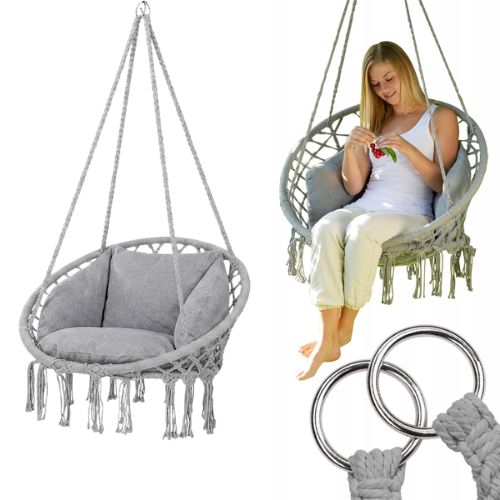 Siva viseća fotelja s jastukom namijenjena je opuštanju na balkonu, terasi, u vrtu ili u interijeru. Ovaj model posebno je praktičan za sve koji žele udobno sjedenje, lagano ljuljanje i kompaktniji format u jednom proizvodu. Siva viseća fotelja s jastukom je viseća fotelja za sjedenje koja služi za udobno opuštanje na balkonu, terasi, u vrtu ili u interijeru.