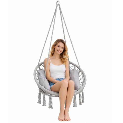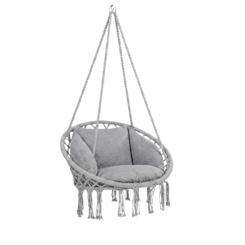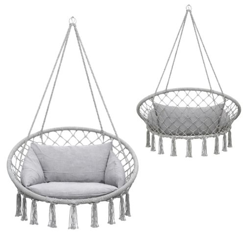 Odaberi sivu viseću fotelju s jastukom i unesi više udobnosti, ljuljanja i opuštanja u svoj prostor.